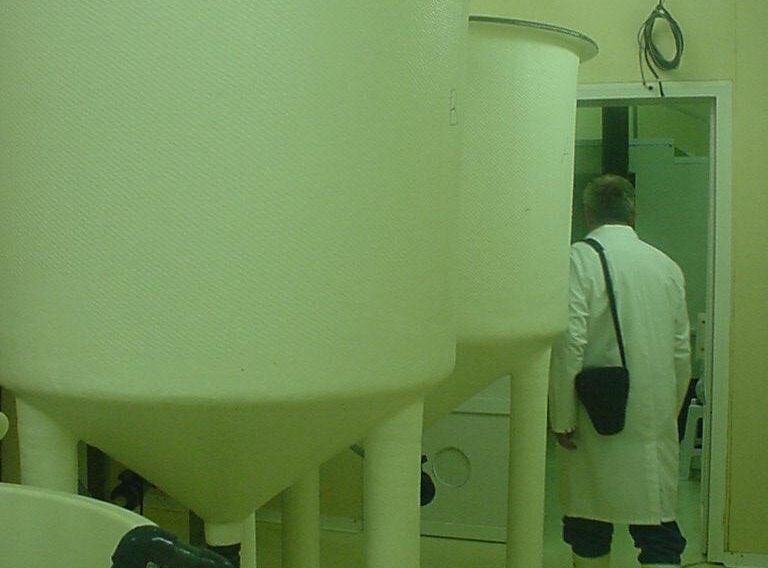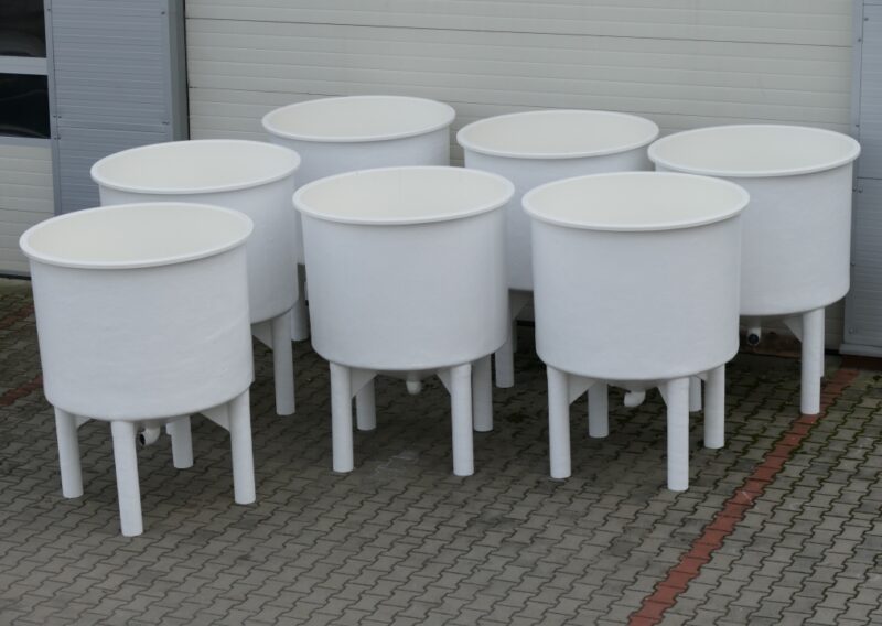 Rundbecken mit Kegelboden produziert aus Laminat und Edelstahl dienen zur Zucht und als Bruthaus der Fische oder auch zur Zucht des Panktons.