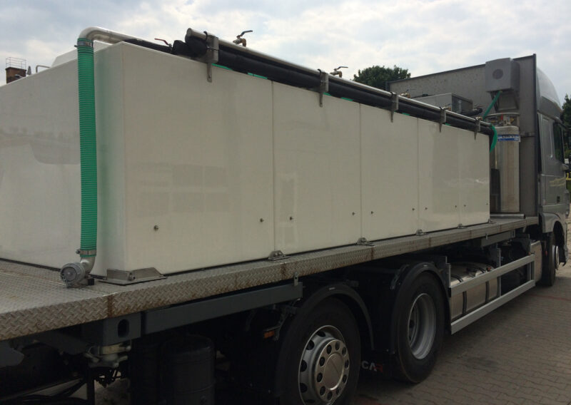 System składa się z agregatu prądotwórczego oraz agregatu chłodniczego. Niezależne zasilanie pozwala na utrzymanie temperatury w basenach nawet podczas postoju samochodu. Obniża temperaturę do ok. 1°C /h.